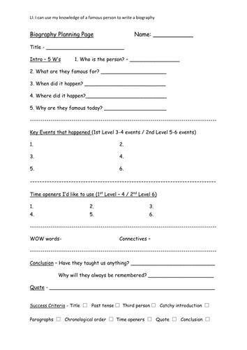 Writing A Biography By Karenarthurs91 - Teaching Resources