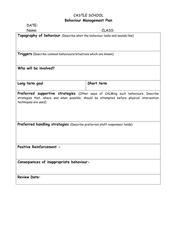 Sen Individual Behaviour Management Plans, Learning